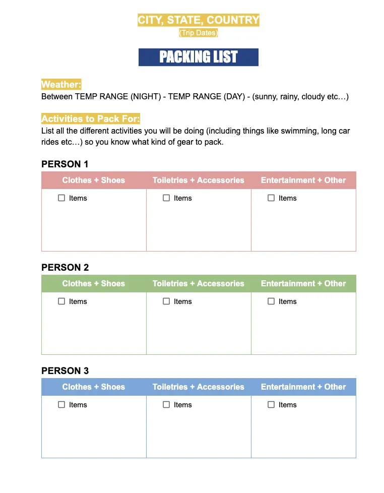 Traveling as a family is fun, but it's also A LOT of work to prepare. The Family Travel Prep Planner makes it easier to get ready for your adventure in less time, with fewer headaches, and without forgetting anything!